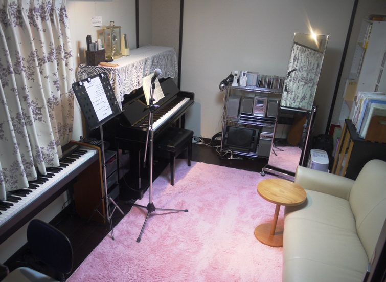 8畳の広々したレッスン室はYAMAHAアビテックス防音室を採用。夜間のレッスンでも、マイクを使ってのびのびと歌っていただけます。